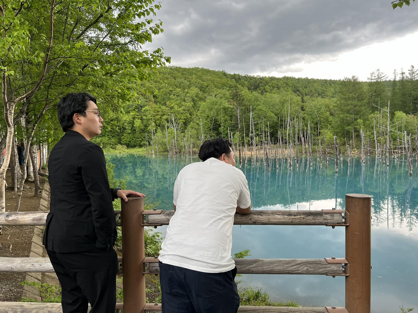 オフィスは東京と札幌にあり、業務によっては出張することも。ということで5月末には新規事業立ち上げ準備のために社長の田中雄土、新規事業リーダーの西村賢人と一泊二日の美瑛出張へ。