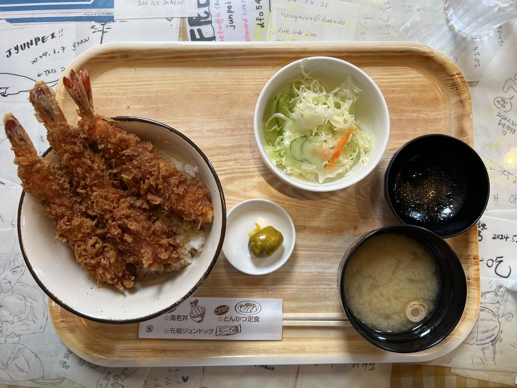 2日目は地元のみなさまにいろいろと町のことを教えていただき、「じゅんぺい」さんでランチ。エビフライなのでソース味を予想してましたが、意外にも天丼に近いあっさりした和風の味わいでした。ボリュームたっぷりですが、脂っこさも全く感じず気づいたらなくなっていました。