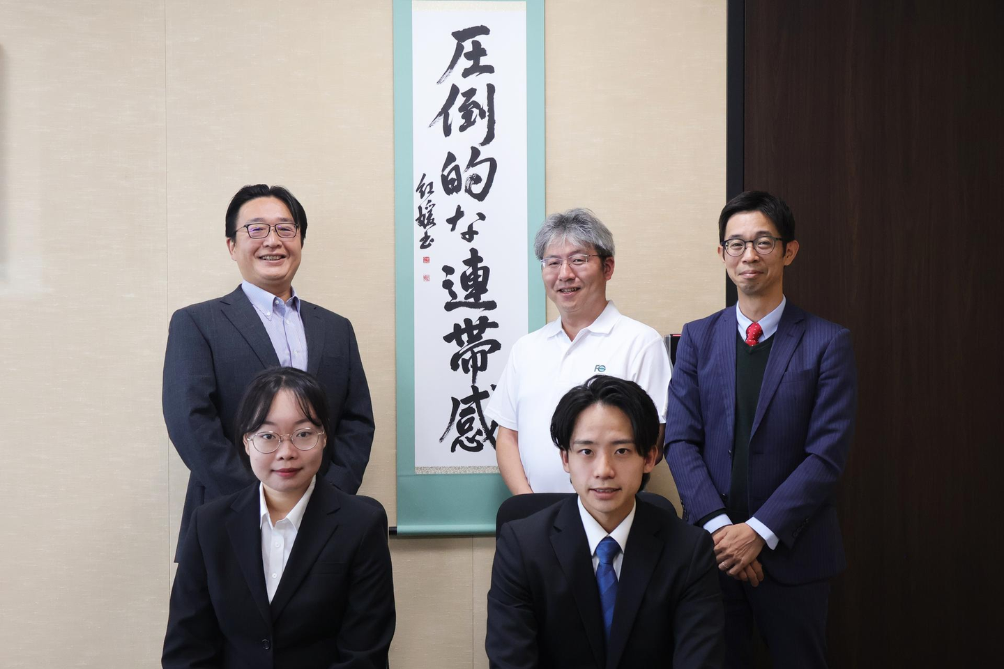 最後は、フェアコンサルティングのスローガンである「圧倒的な連帯感」の掛け軸の前で、記念撮影をさせていただきました📸