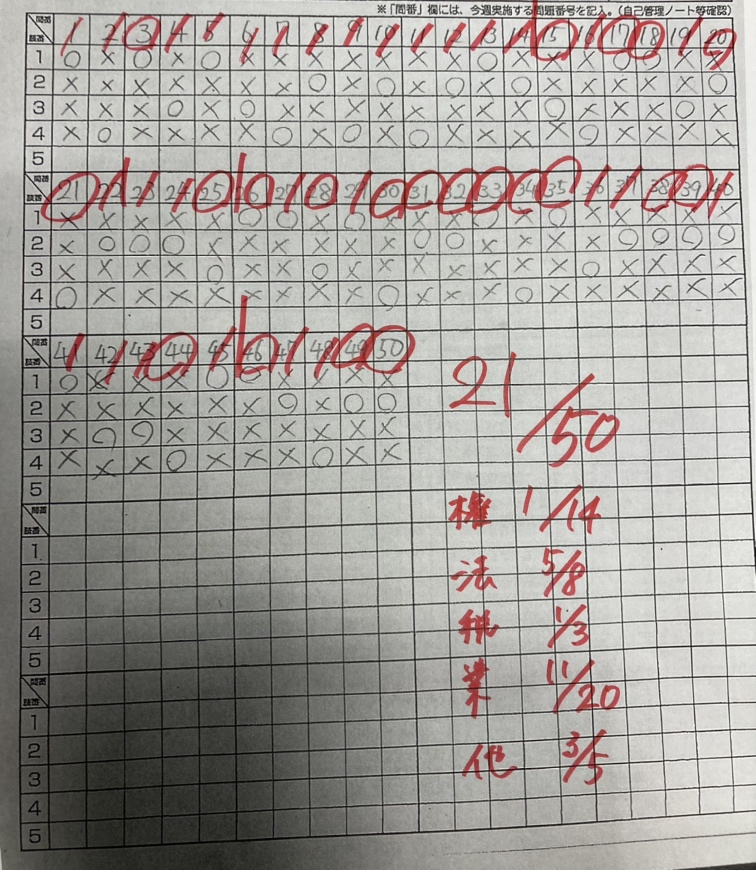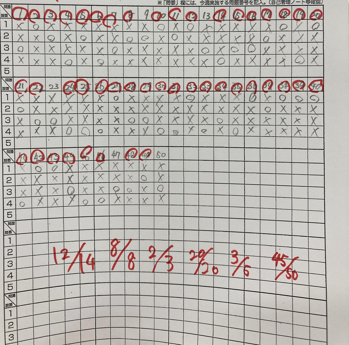 最初の3か月間は分野ごとの50問テストを実施し、基礎力の定着を目指しました。