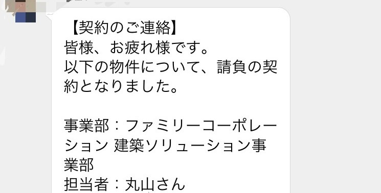 4月に入社した新卒8期生・丸山さんの初契約を知らせる連絡でした!