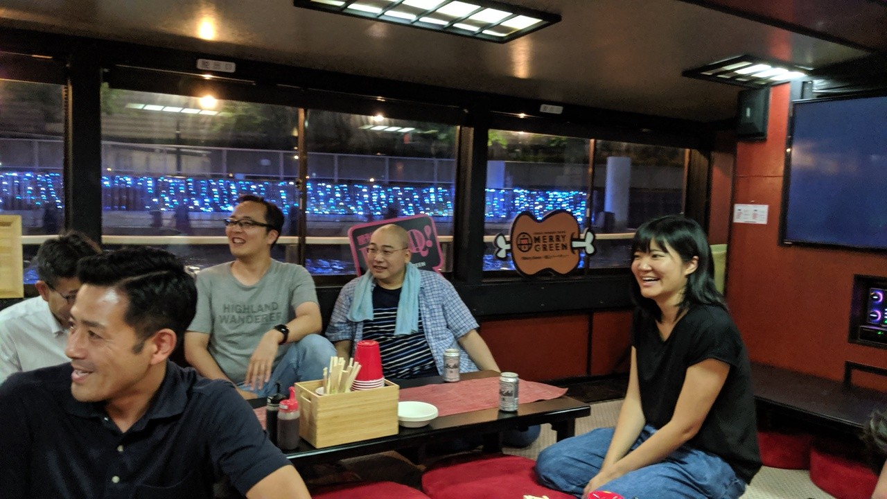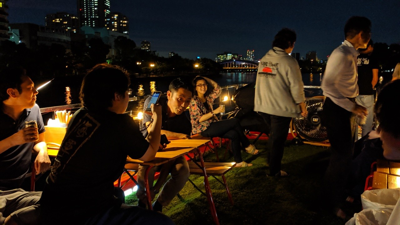 みなさん気持ちよさそうに夜風に当たりながら景色を楽しみ、酒をたしなむ。。。