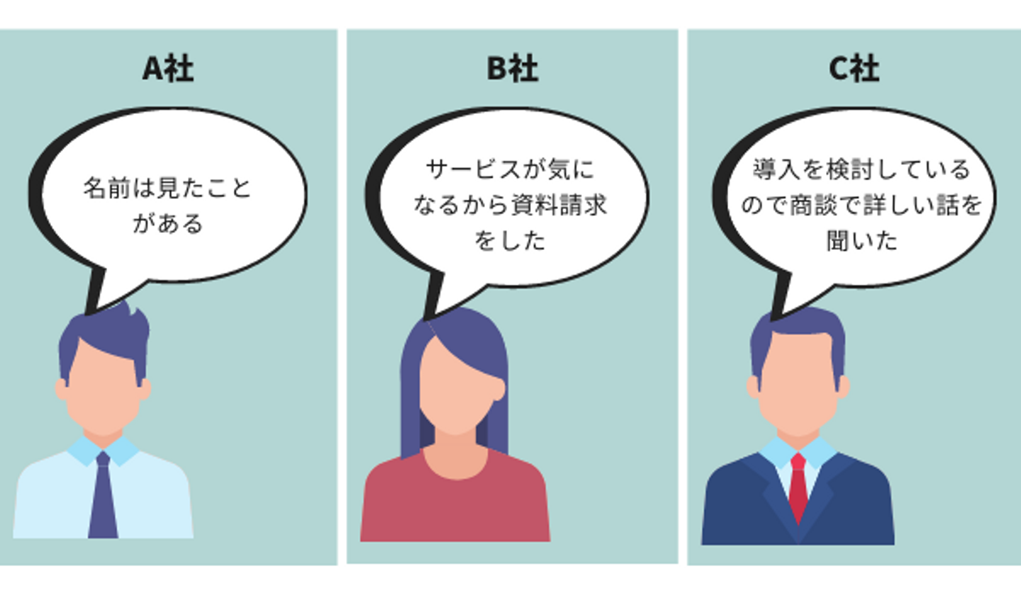 このような3社は全て『見込み顧客』と呼ばれますが、営業をかけた時、契約に至るまでの時間や労力に大きな差ができるのは明確ですよね!