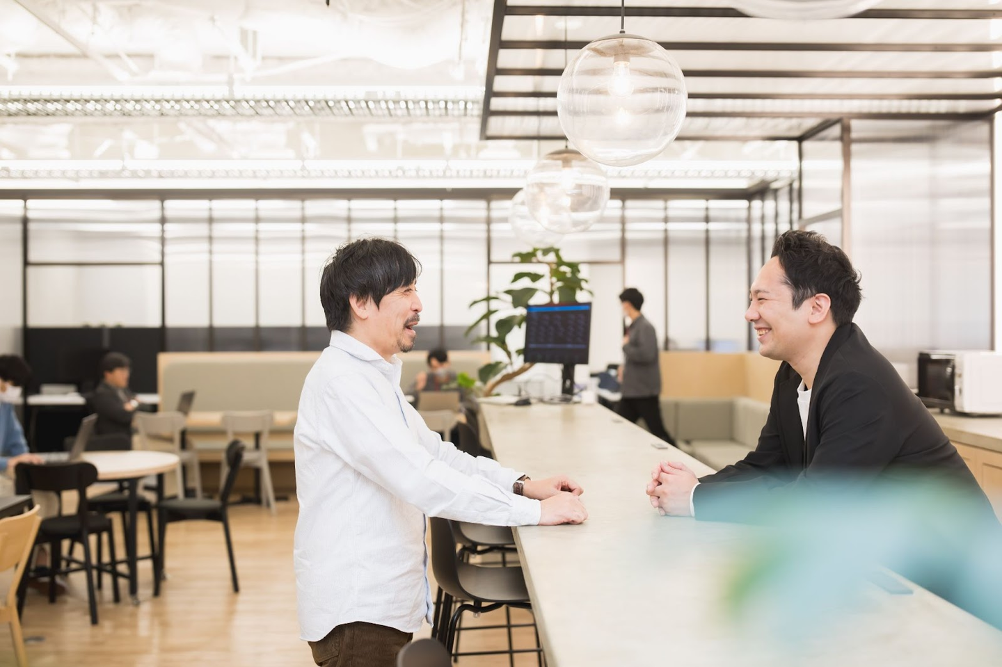 今回は「オフィスステーション」の開発チームの2名(写真左から向井政憲・熊田真也)にインタビューを行い、開発組織のビジョンや働き方、大切にしているバリューなどを語ってもらいました。