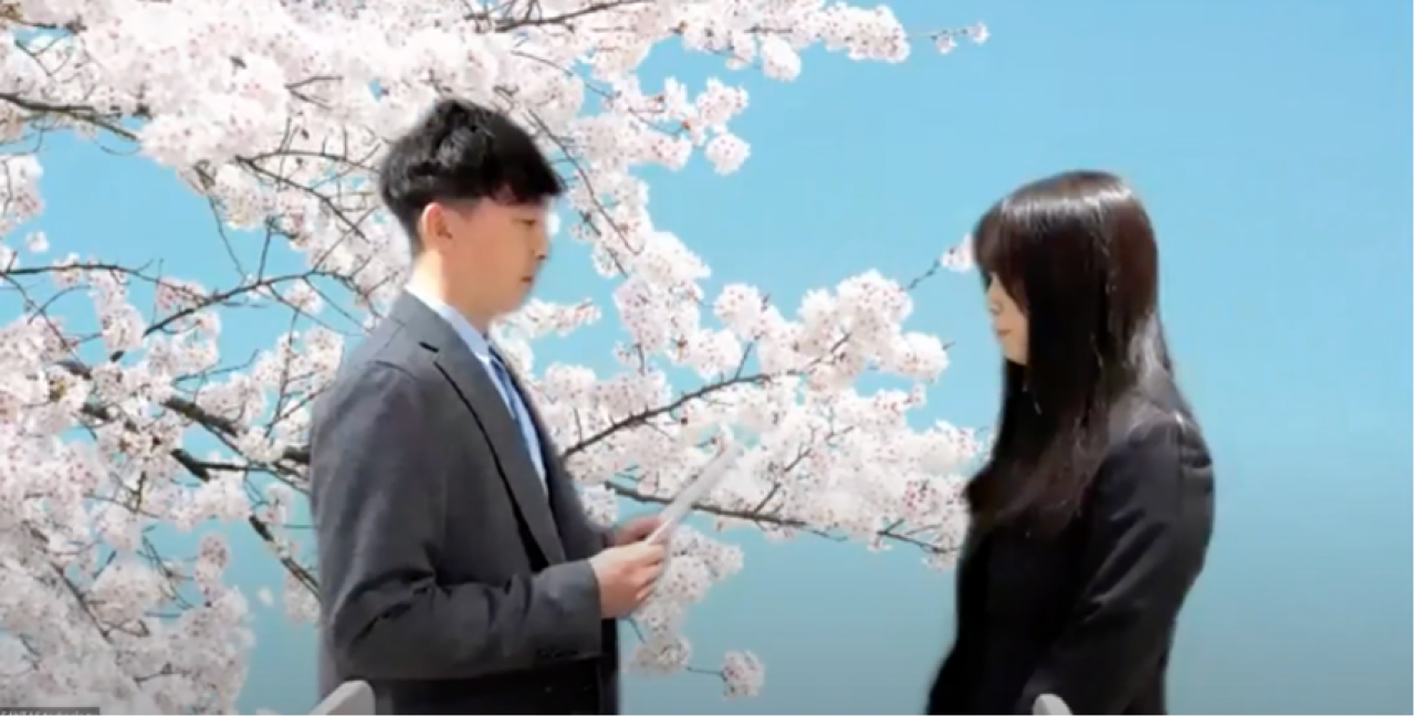 カメラの前にいる全社員に対して、緊張しながらも堂々と話す姿に頼もしさを感じます。