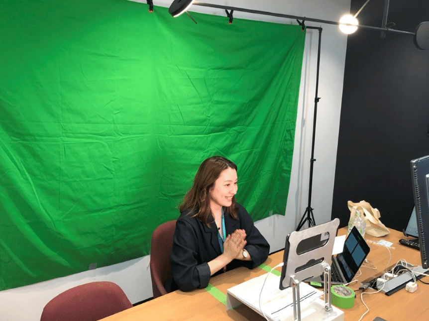 会議室に専用の配信スタジオを作り、それぞれの部署にプレゼン形式で事業紹介をしてもらいました。