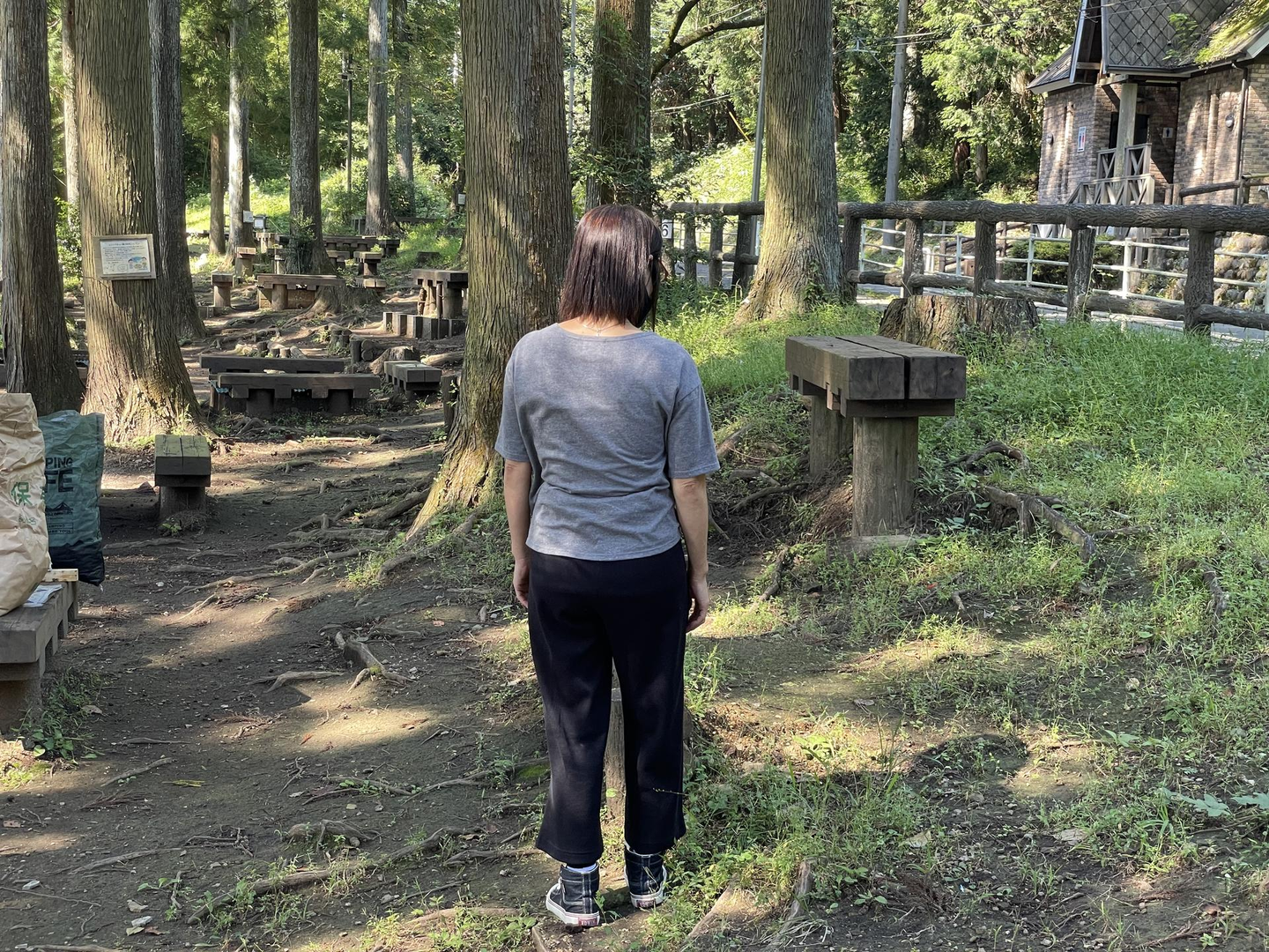 周りは森に囲まれていて、BBQコンロがあるところは日陰で涼しかったです。
