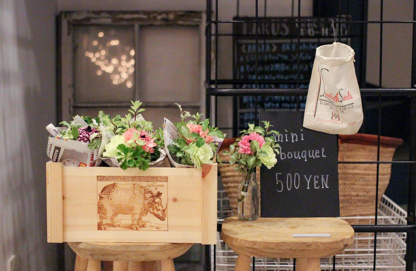 1Fのお花屋さん がランチタイムにレストランの片隅でミニブーケの販売をしてみたり