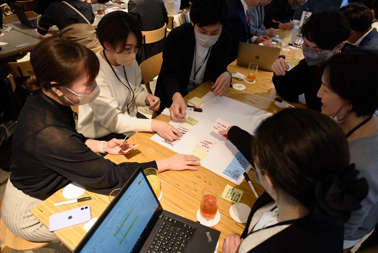 バラバラの部署・キャリアレベルの社員が一つの机を囲み、バリューを今後全社に浸透させるためにはどのような行動をすべきなのか?、どのようなシーンで言葉として使っていくのか?について真剣に向き合ってもらいました。