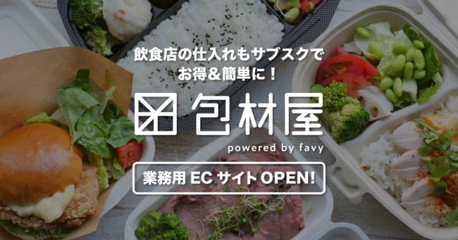 食マーケティング総合企業の株式会社favy(代表取締役社長:高梨 巧、本社:東京都新宿区、以下favy)は、飲食店の仕入れに関わる課題を解決する取り組みの第一弾として、伊藤忠商事株式会社(東京本社:東京都港区、以下伊藤忠商事)、司企業株式会社(本社:東京都大田区、以下ツカサ)と協業し、2020年8月18日よりテイクアウト容器をサブスク(定期通販)で提供する専門通販サイト「包材屋(ほうざいや)」をオープンします。