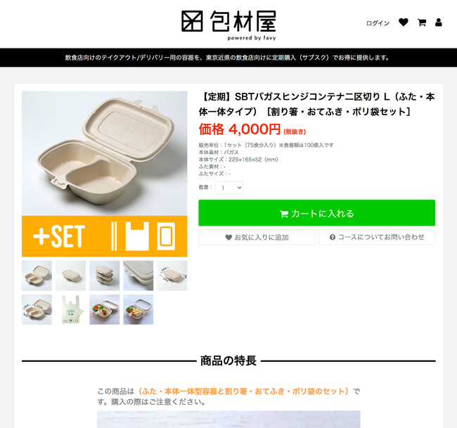 飲食店の在庫適正化を実現するサービスの第一弾として、飲食店向けのテイクアウト容器をサブスクリプション型(定期通販)で提供するのが「包材屋」です。