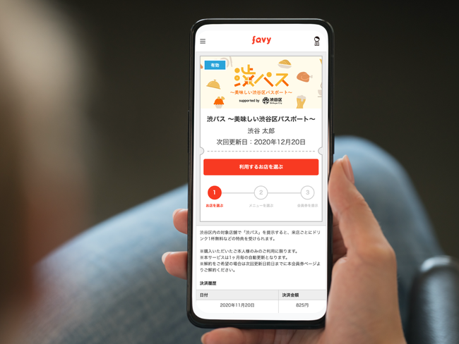 食マーケティング総合企業の株式会社favy(代表取締役社長:高梨巧、本社:東京都新宿区)は、渋谷区が主導し、サッポロビール株式会社、株式会社ポニーキャニオンとともに推進する「飲食店支援プロジェクト」において、月額750円(税抜)で渋谷区内の飲食店を横断してお得に利用できるサブスクリプション(月額定額制)サービス「渋パス〜美味しい渋谷区パスポート〜」を2020年11月19日(木)よりサービス提供を開始することをお知らせいたします。 さらに、2020年12月23日までのご購入の場合は、初月割引が適用されるキャンペーンも実施いたします。
