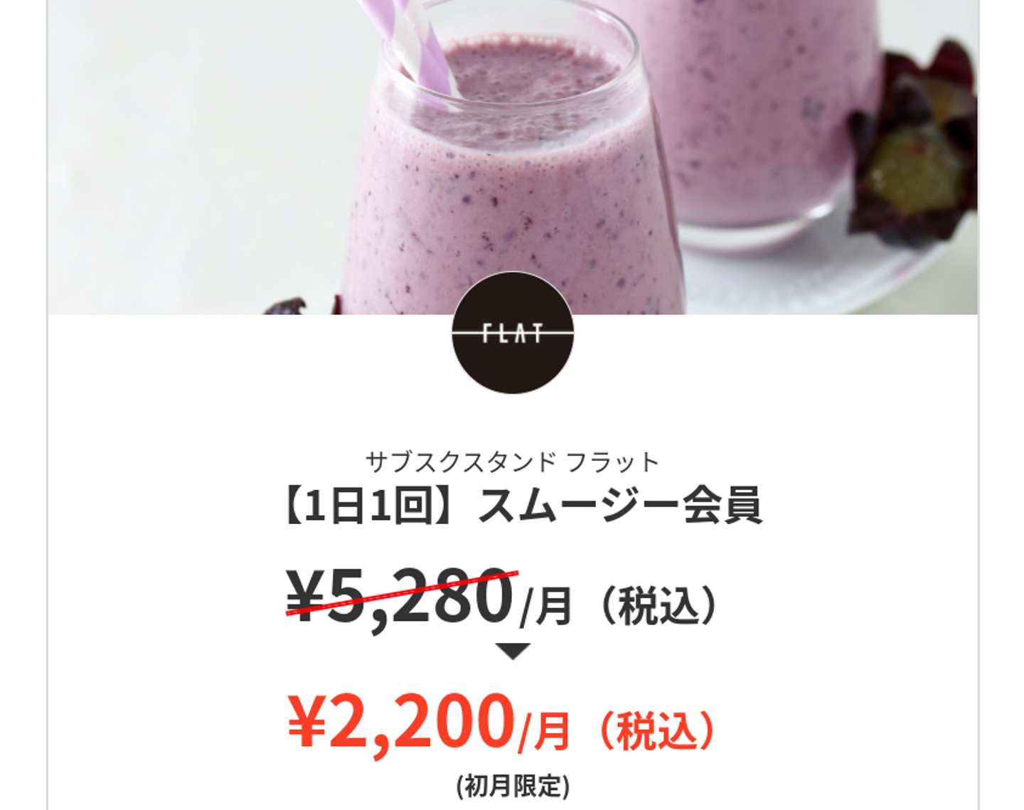 【1日1杯無料】スムージー会員:月額4,800円(税抜)→初月限定 月額2000円(税抜)