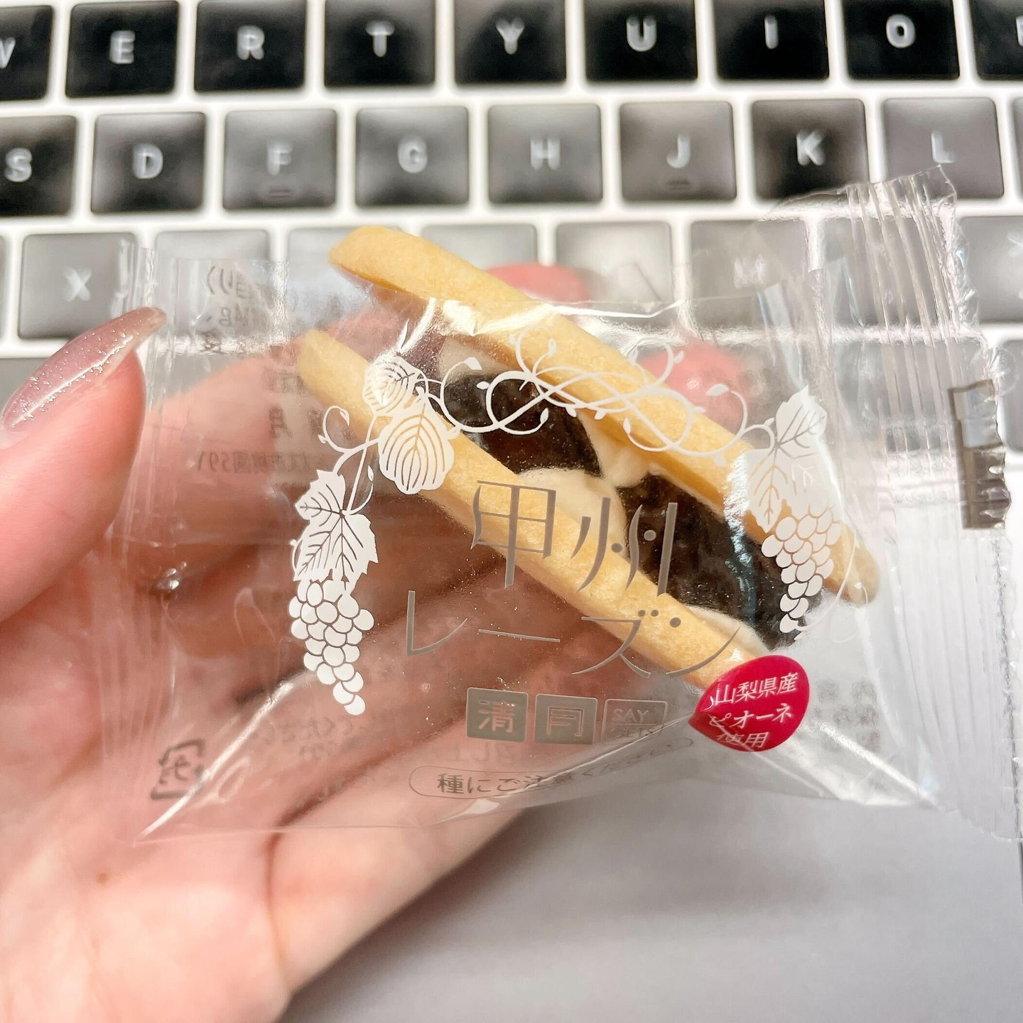 甲州レーズンは、山梨県産の大粒ピオーネを使用したレーズンサンド。