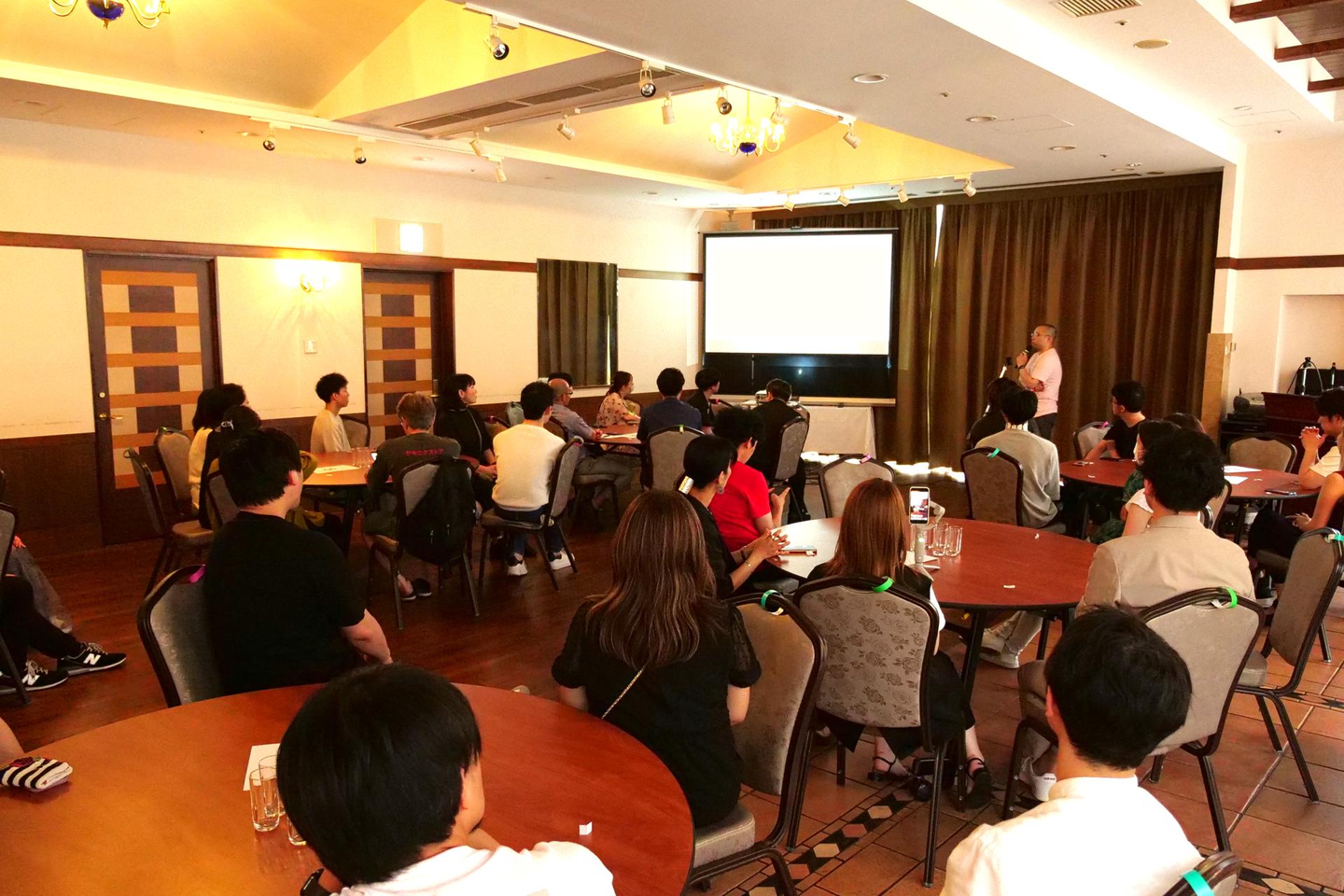 ワークのあとは社外の会場に移動し、社長の高梨から8期目の振り返りと今後の事業戦略の発表がありました。