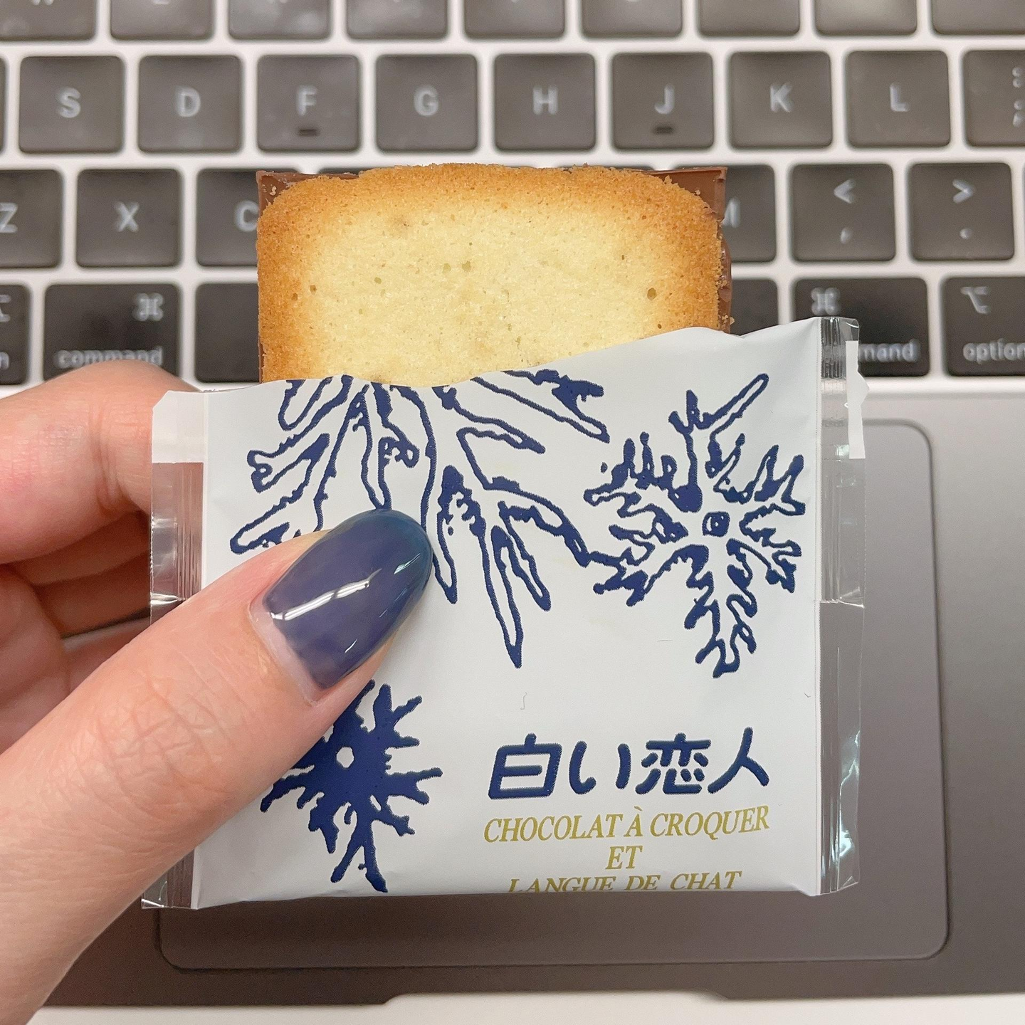 ラング・ド・シャクッキーの生地で、「白い恋人」のためにブレンドされたオリジナルチョコレートをサンドしています。