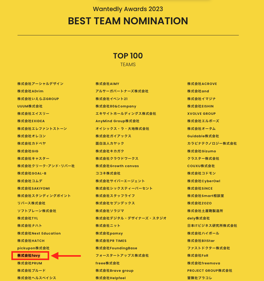 採用ブランディングや共感採用といった観点で総合的な採用力を称える部門、BEST TEAMでは、TOP100企業に選出いただきました。2年連続での選出、非常に嬉しいです。ありがとうございます!
