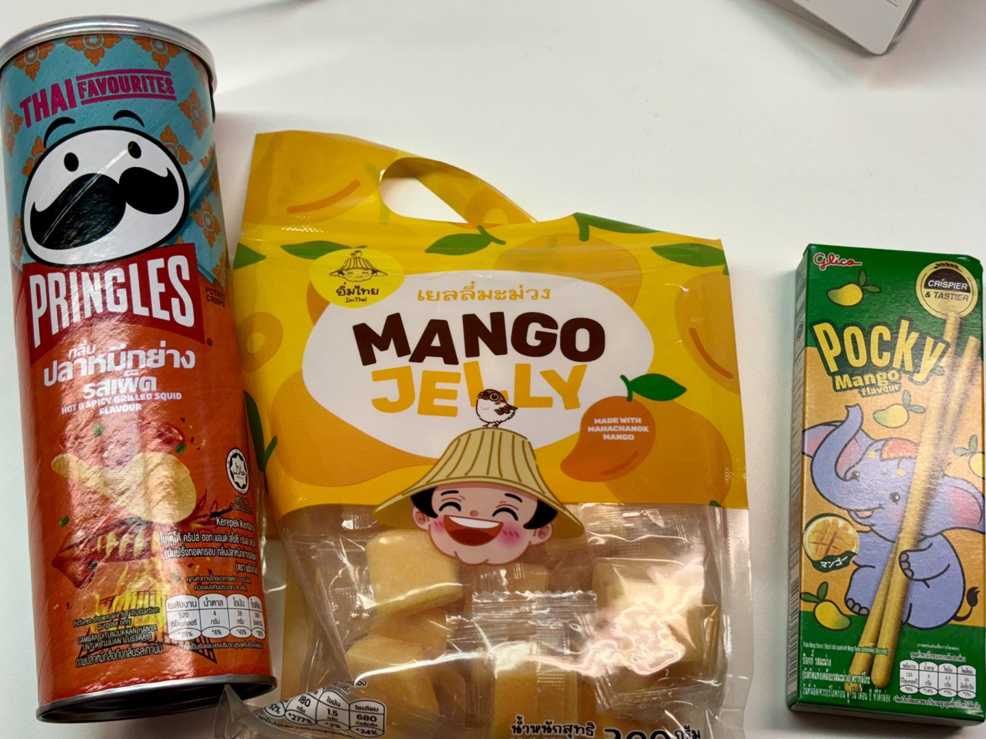 お手頃価格のお菓子には、世界的に有名な企業のタイ限定フレーバーが多数あり、社内でも人気でした。