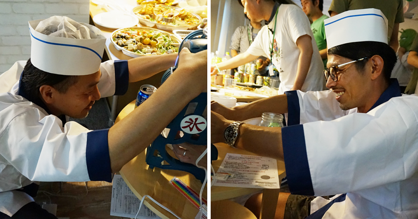 お揃いのハッピで登場して役員自ら振る舞ってくれたのが「FFかき氷」です!