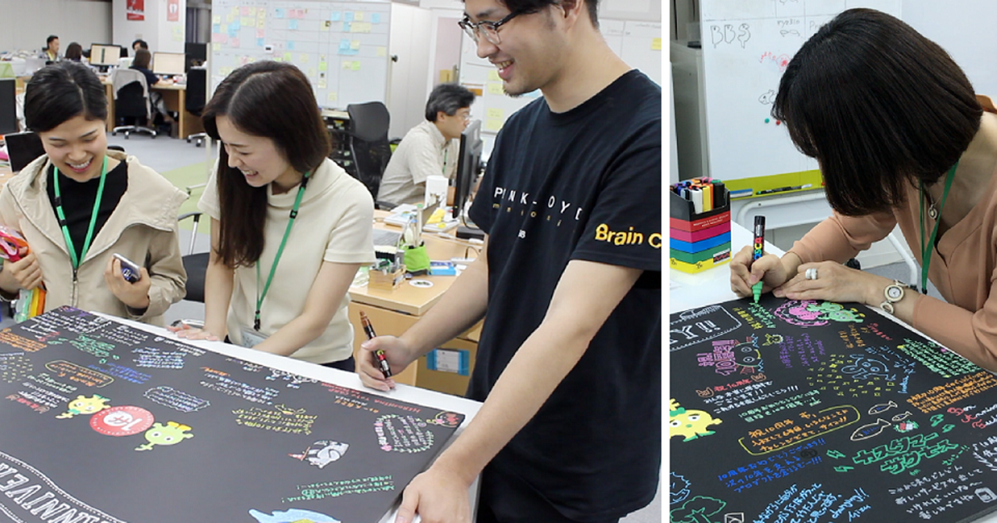 そして社員全員のメッセージが書かれたメッセージボードもこの日の為に準備!パーティーの10日前からみんなでメッセージを書き溜めてきました。現在はエントランスに飾っているのでご来社された方は是非ご覧ください!