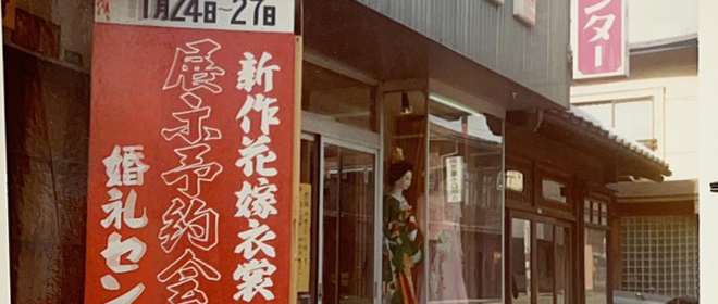 今からちょうど50年前、小さな小さな町の衣装店でした。 和装だけでなく洋装のレンタルも始め、フォトスタジオや結婚式場もオープン。 ライフステージに関わる様々なサービスに取り組んできましたが、 貫き通したのは、“ 家族の絆づくり ” をサポートすること。 この半世紀、周りの方に強く支えられ、温かく育ててもらいました。 私たちは地域の方やお客様に寄り添ったサービスで、 その深い感謝を表していきたいのです。 “ 家族の絆づくり ”を根幹とし、 時流に沿ったトランスフォーメーションを目指している会社です。