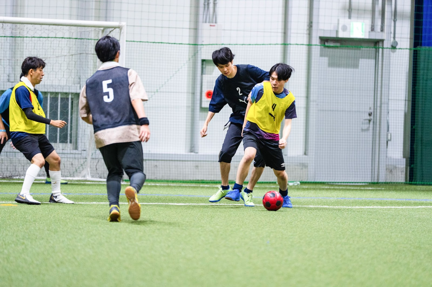 会場選びのポイントは、フェンリルの大阪本社から近い場所にあること、貸し切りにできること、空調が完備されていることでした。セレッソフットサルパークは、フェンリルの大阪本社から電車で13分ほどの場所に位置。天候に左右されない室内型フットサルコートを4面完備しており、申し分ない会場です。