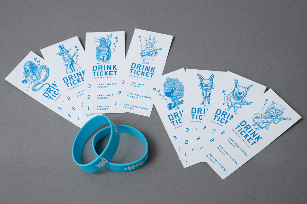 テーマカラーのシアン一色で統一し、ポスターに登場した妖怪をチケットごとに異なるデザインに。手に取るたび楽しい工夫を施しています。