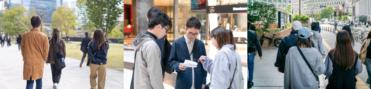 午前中の謎解きゲームで開けた箱の中に入っていたヒントを基に、大阪オフィス周辺で◯が写った写真を収集するロゲイニング(地図をもとにチェックポイントを回って得点を集めるスポーツ)を実施しました。