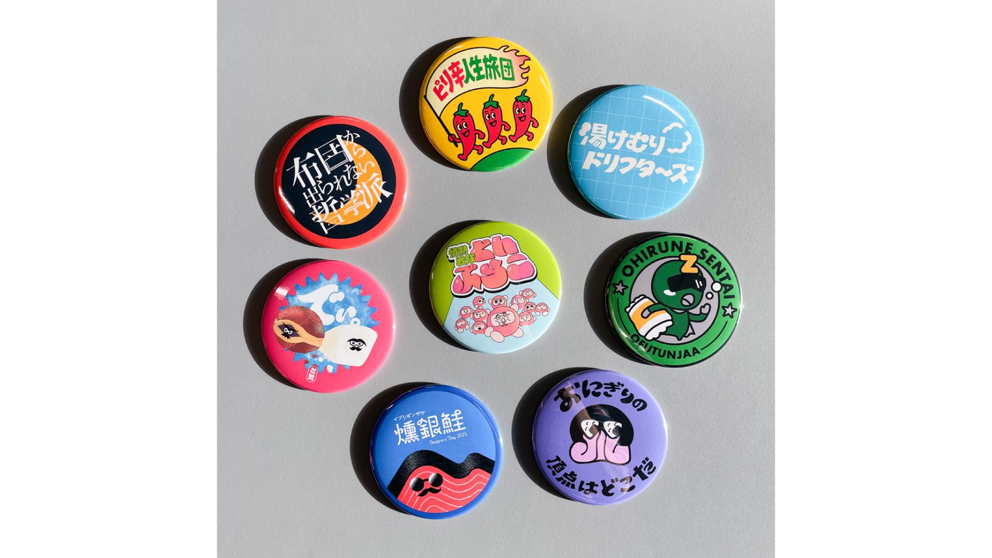 今年のノベルティは缶バッジ! 缶バッジの形状は運動会のテーマである「◯」にちなんでいます。各チームで事前に話し合ってデザインしてもらいました。