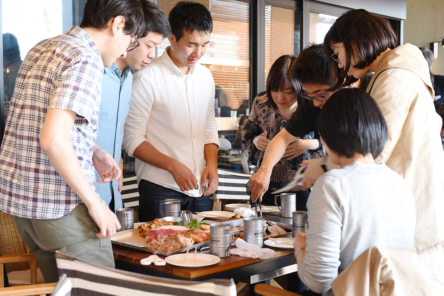ワークショップで頭を使った後はBBQのスタート。この日はあたたかく快晴だったので、絶好のBBQ日和でした!