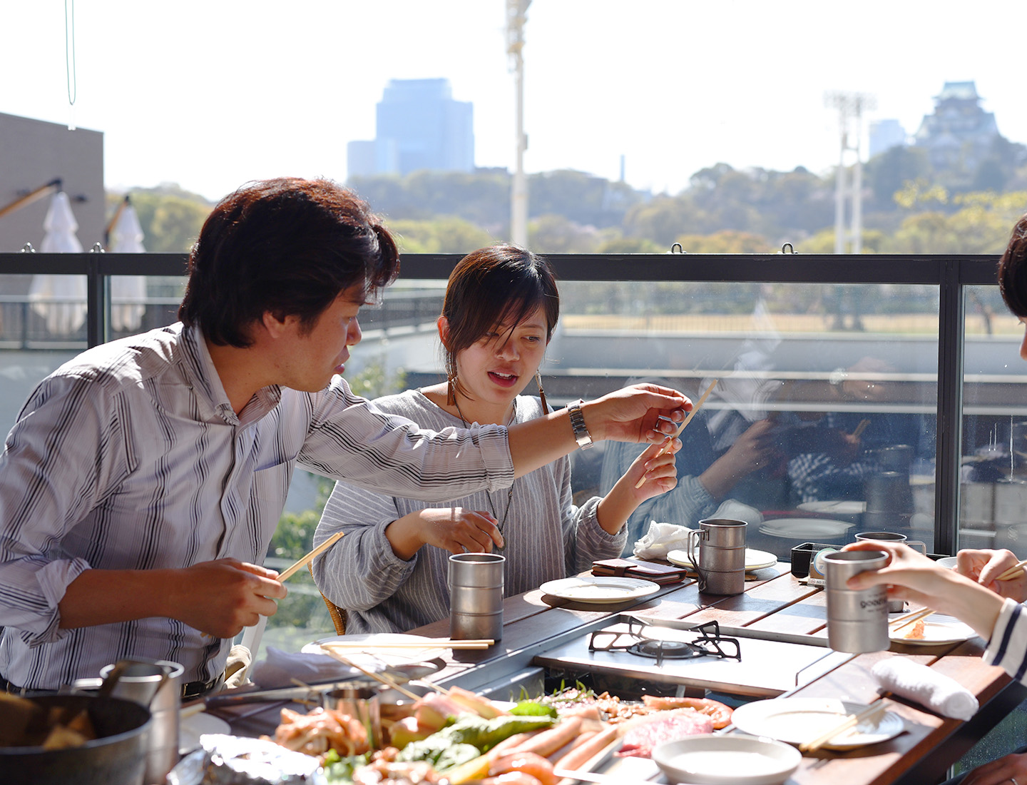 大阪城が見えるシチュエーションでBBQなんて贅沢ですよね。(右奥に大阪城が見えてます!)