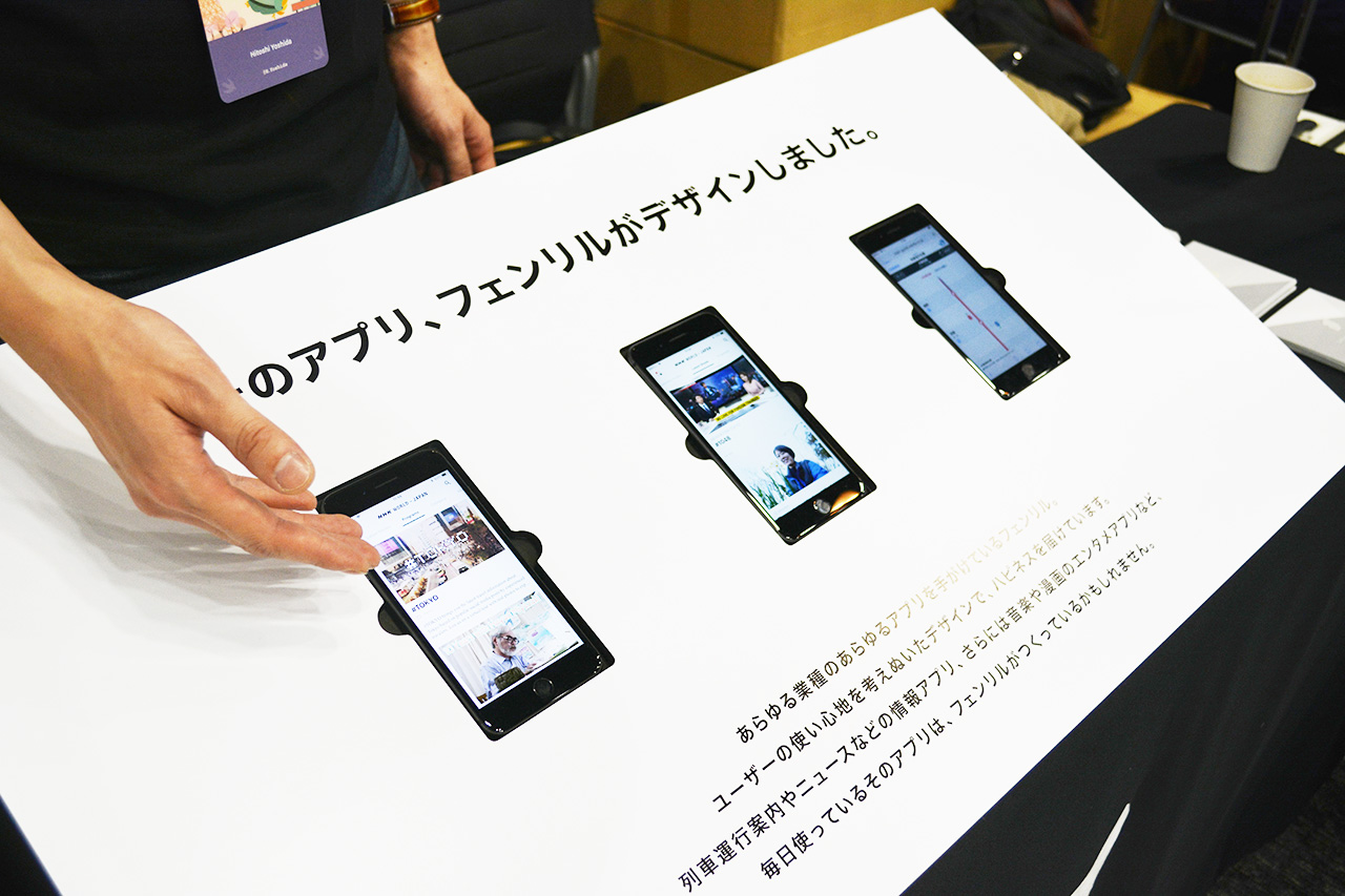 フェンリルのプロダクトに触れていただけるように用意されたこちらのパネルは、フェンリルのコーポレートサイトの実績ページをイメージさせるデザインとなっています!