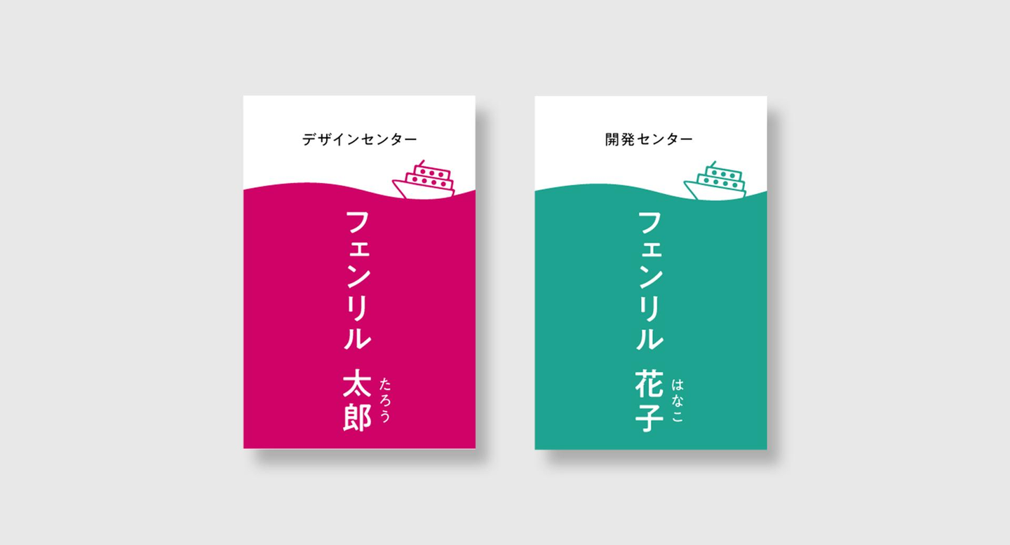 名札は配属部署ごとに色分け(エンジニアは緑、デザイナーはピンクなど)されていて、この名札を見せあうことで、入社して日が浅いメンバーでもコミュニケーションが取りやすいよう工夫されています。
