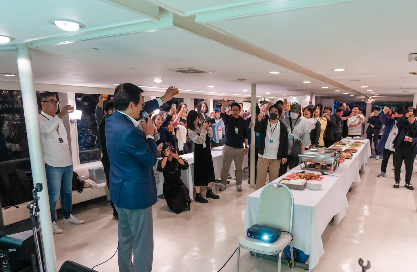 東京メンバーの人数が増えたため、前回のクルージングよりも大きな船で、2時間の東京湾クルーズがスタートしました。