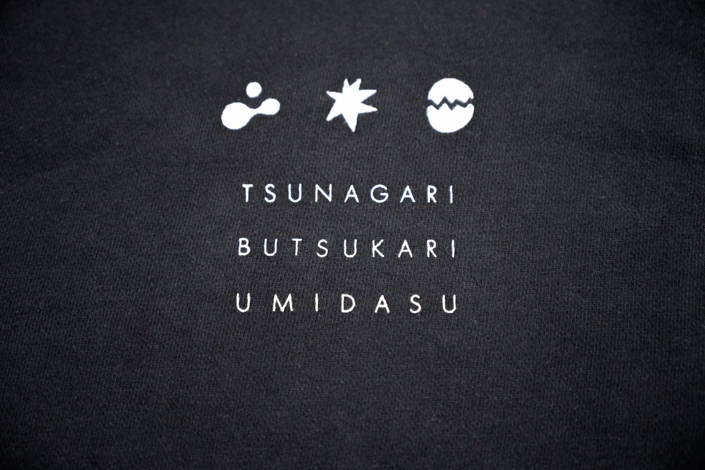 トレーナーの中央に配置した「つながり、ぶつかり、うみだす」というコンセプト。これには、メンバー全員が集結し、それぞれの個性や才能をぶつけ合うことで、新しい価値(シナジー)を生み出したいという願いを込めました。