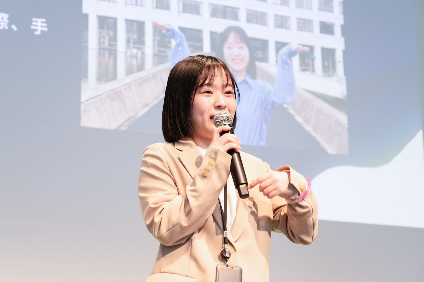 続いてのプログラムは、4月に入社した新卒メンバーによる自己紹介です。学歴や趣味だけでなく、それぞれが最近体験した面白いエピソードを交えた自己紹介で、会場を盛り上げてくれました。新卒メンバーの今後の活躍が楽しみです!