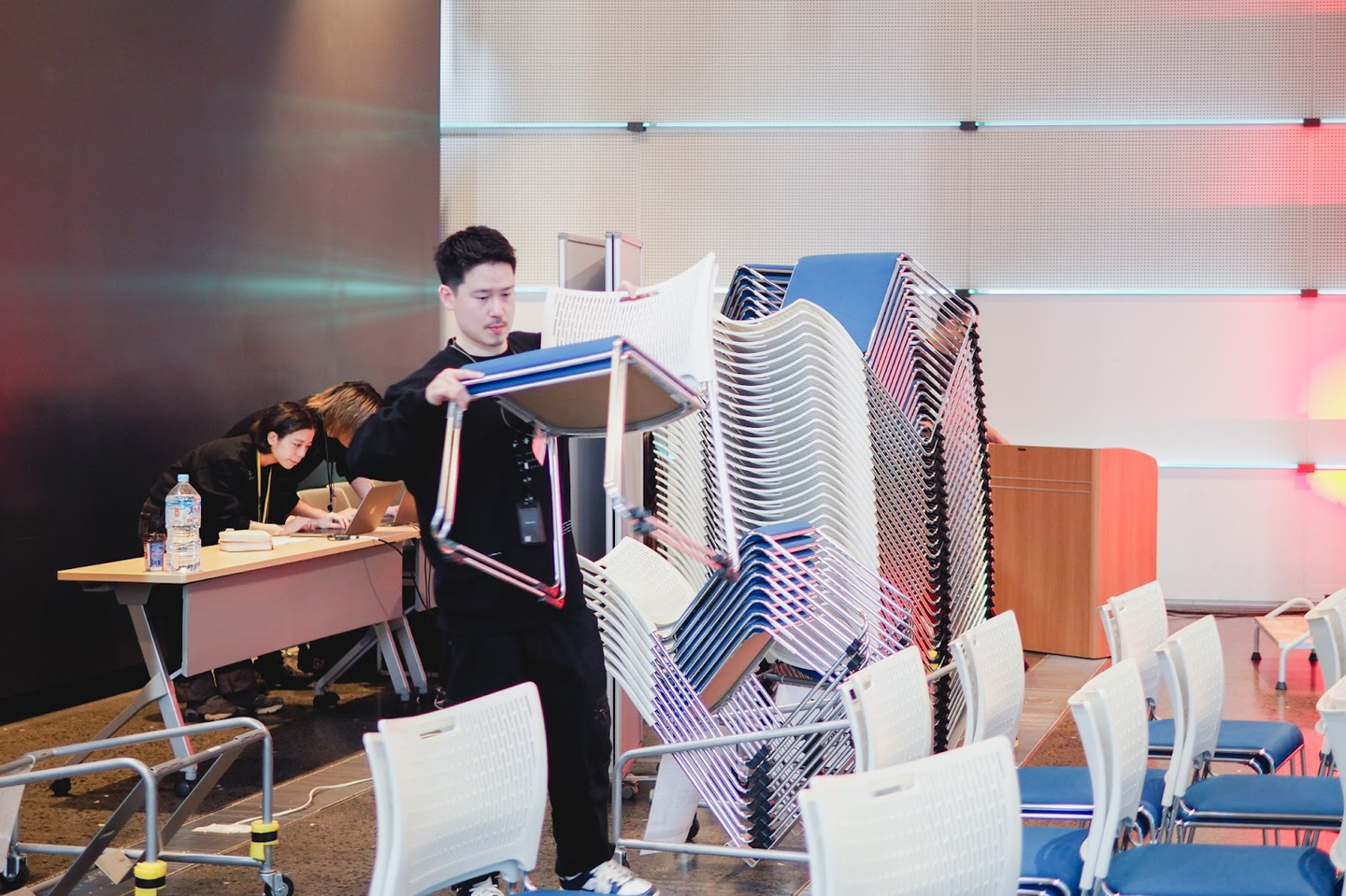 会場は、フェンリルの大阪本社から徒歩5分ほどの場所にある「うめきたSHIP」。運営メンバーは、当日の朝7時に集合して会場の設営をしました。