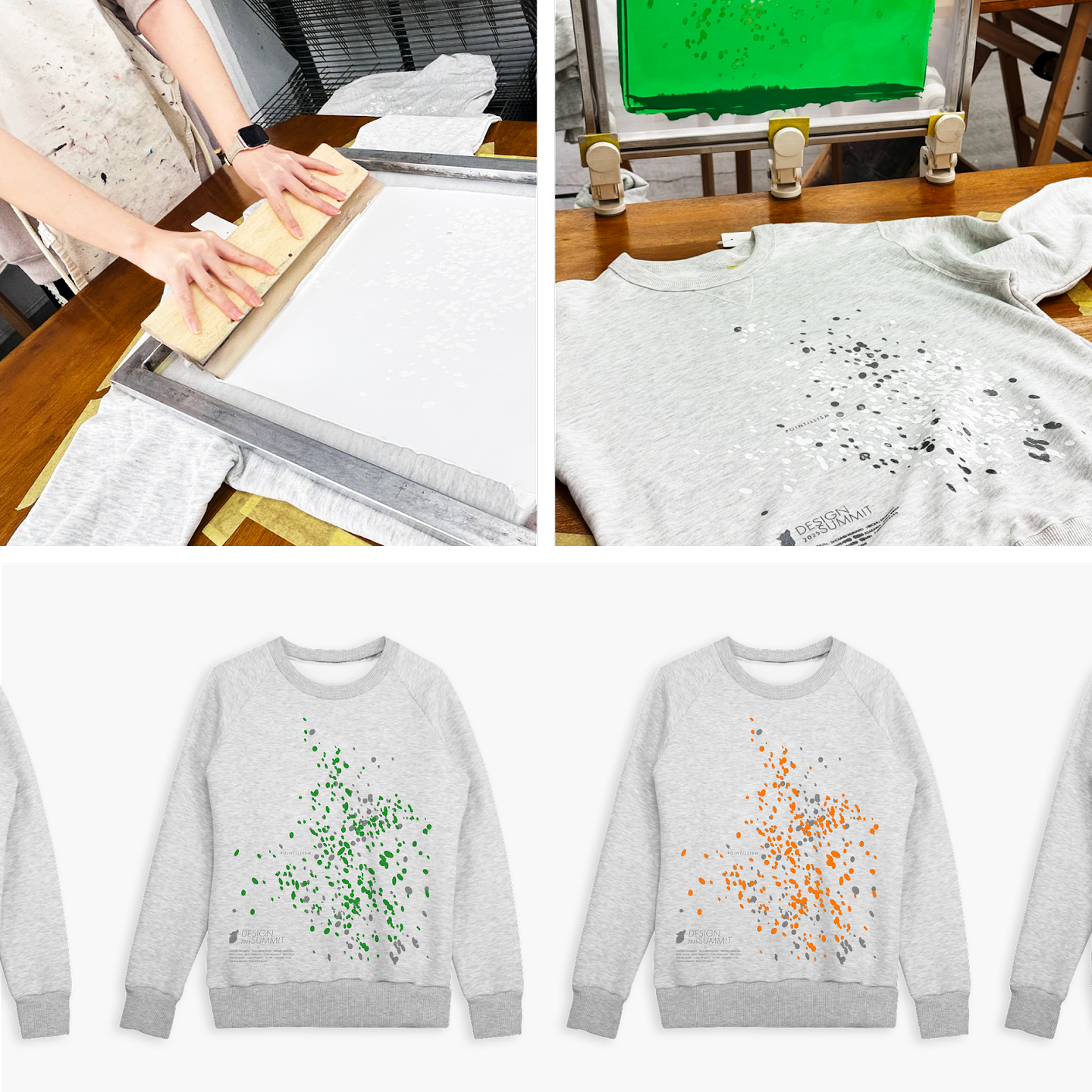 シルクスクリーン印刷のスタジオで、1枚1枚思いを込めてトレーナーを作り、今回のコンセプトに沿った形で複数のカラーバリエーションを用意しました!