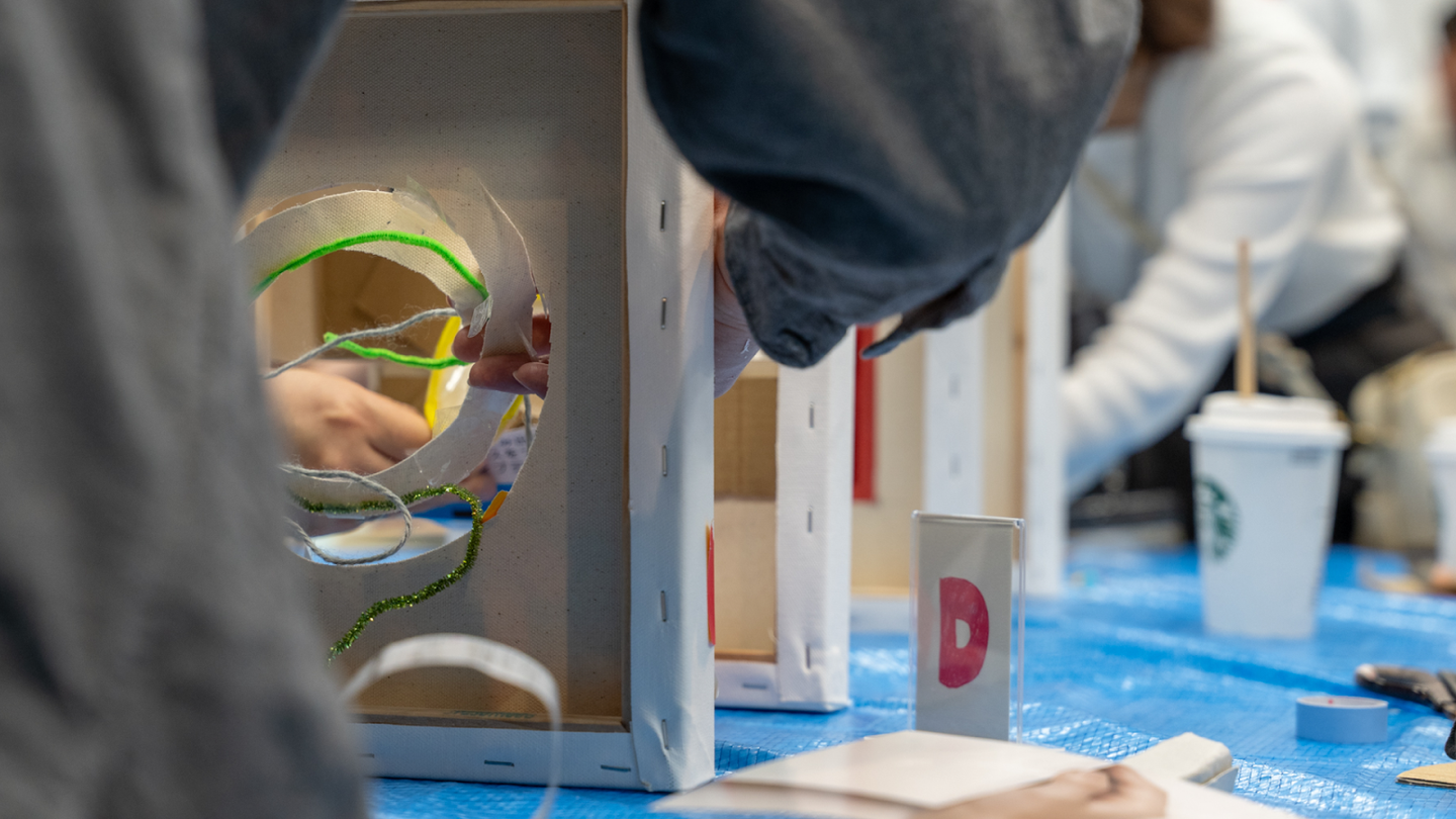コラージュで表現するテーマや素材の選定など、一からチームで話し合って検討していきます。
