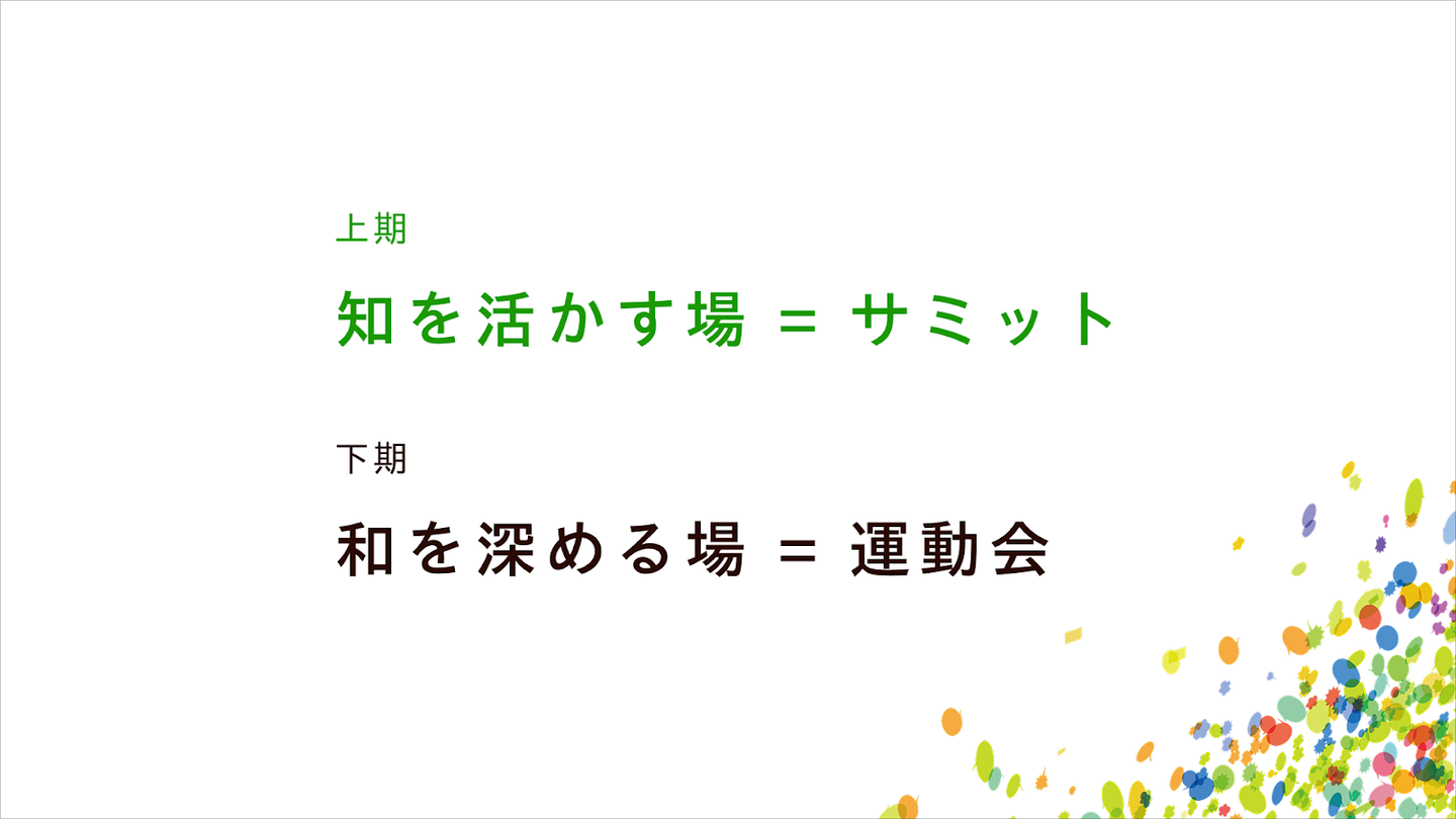 上期のキックオフイベントは、メンバーそれぞれの個性を引き立たせる「知を活かす場」とし、サミット形式で実施しています。