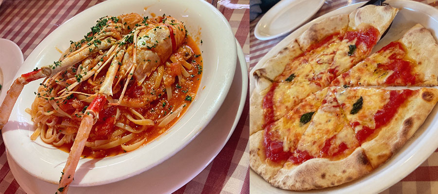 左:海老でかっ!なパスタ 右:みんな大好きマルゲリータピザ