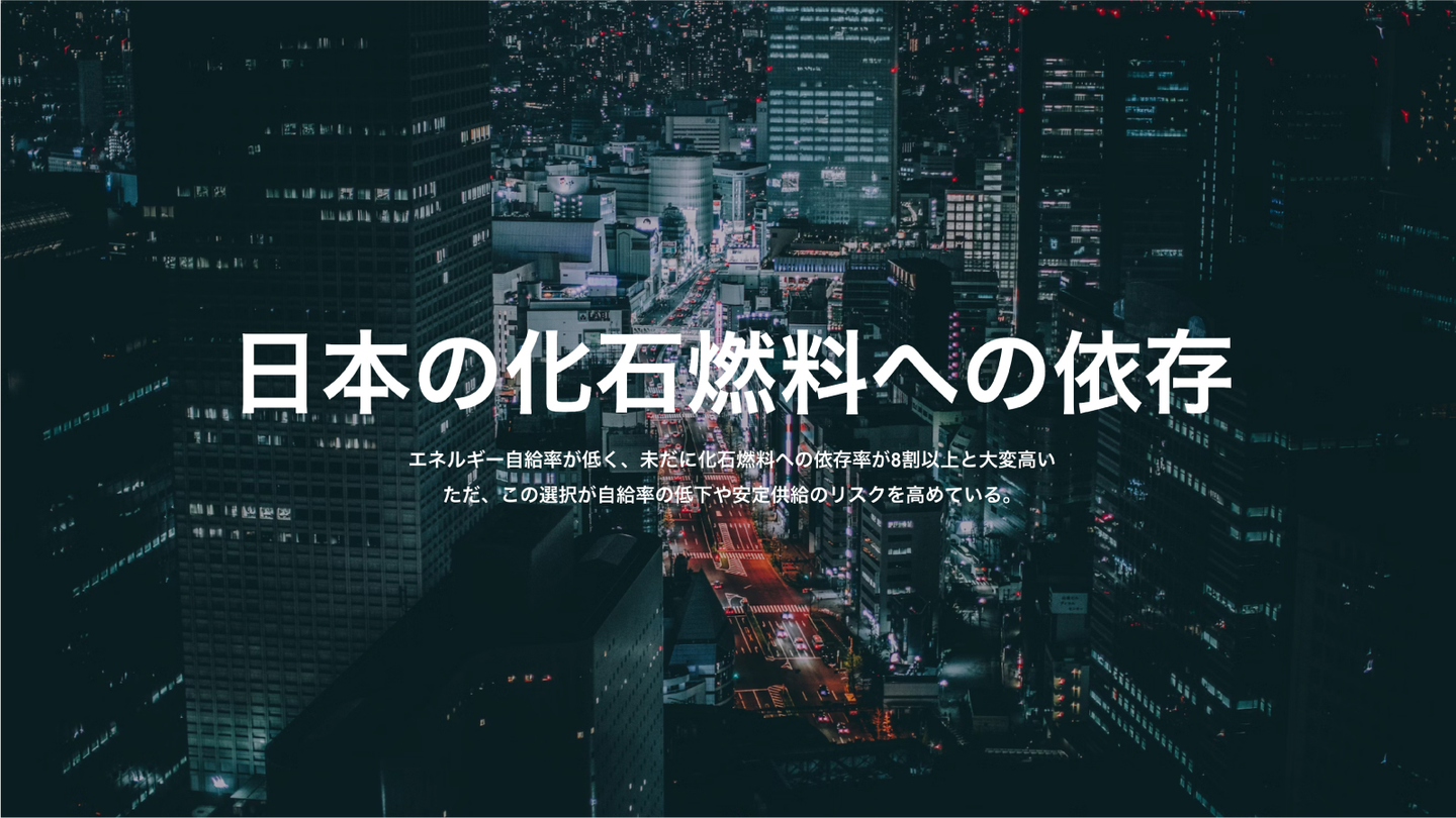 化石燃料への依存率が80%を超える日本。化石燃料は長期的に見ると、いつか枯渇してしまう不安定なエネルギーです。