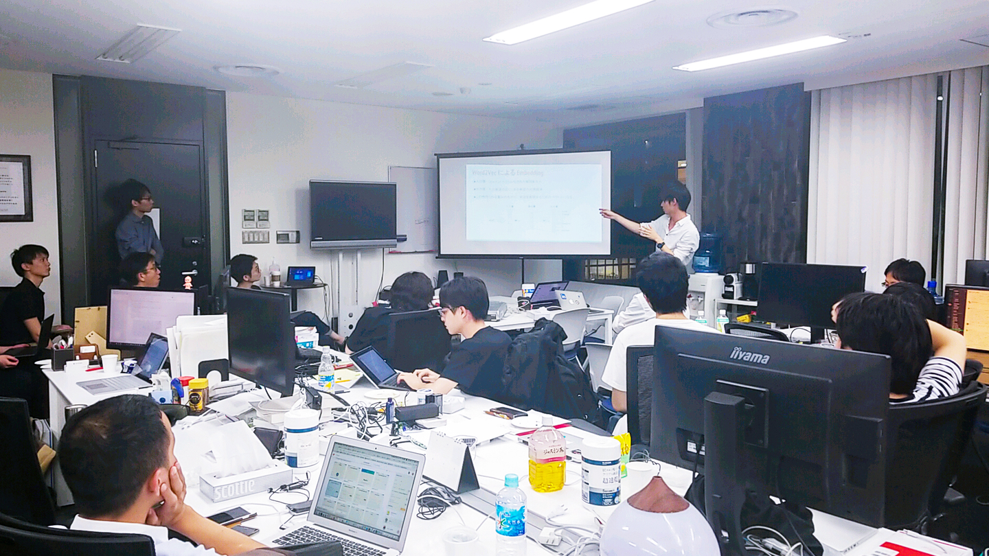 Word2Vecよるテキストからベクトル生成の後、画像解析に用いられるembeddingによってベクトルの演算に意味付けをし、ロジスティクス回帰を行ったところ正しいインパクトが得られなかったことから、CNN(Convolutional Neural Network)での分析でした。今後も自然言語処理について提供していきたいということだったので楽しみです!