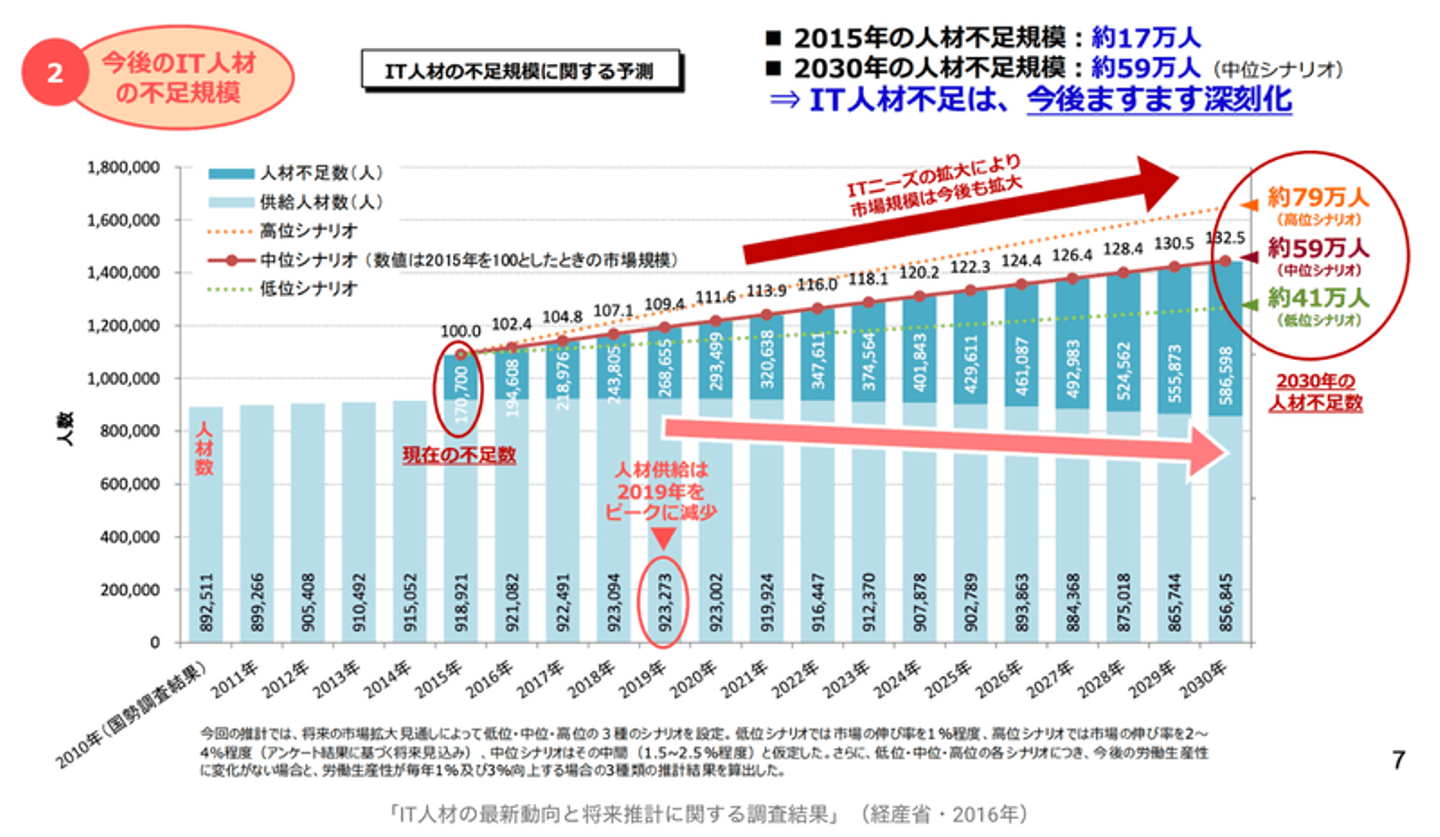 - 日本では2030年にエンジニア不足数は79万人になる