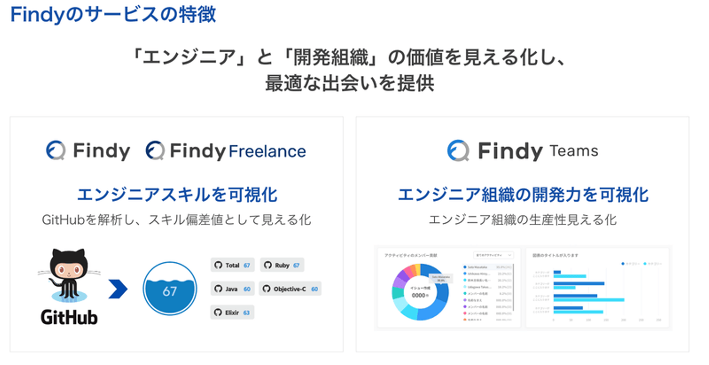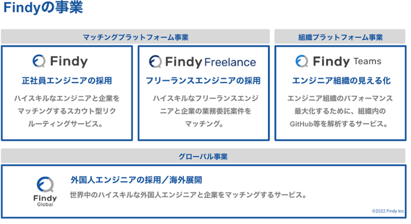 - ファインディはエンジニア領域の人材支援と業務支援を行っている