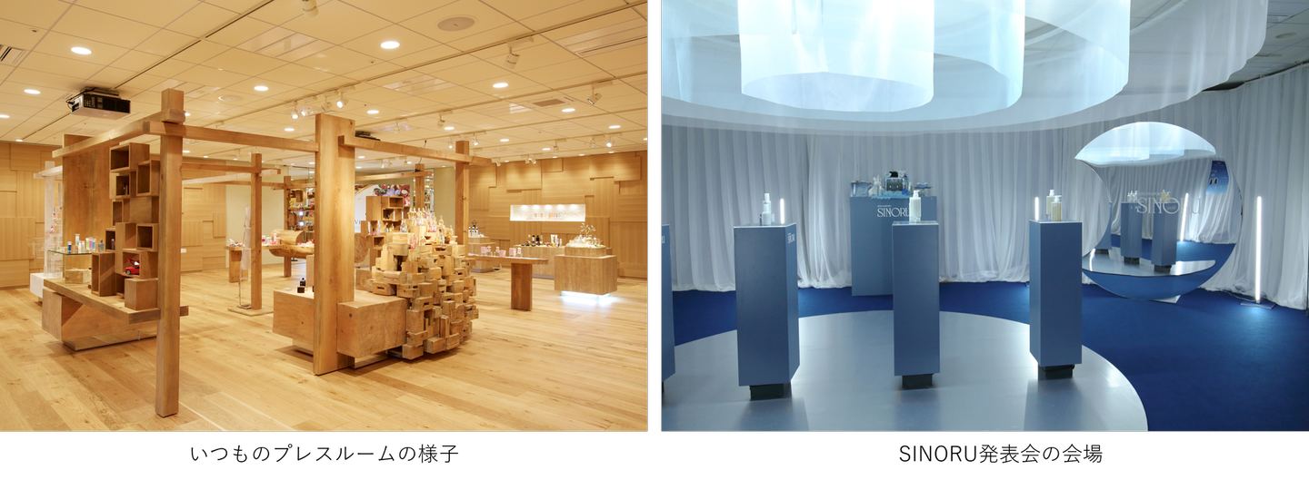 フィッツ本社には、発表会や展示会を行う「プレスルーム」という空間があります。木の温もり感のある素敵な空間なのですが、今回の発表会では、このプレスルームをSINORUの世界観に・・・!