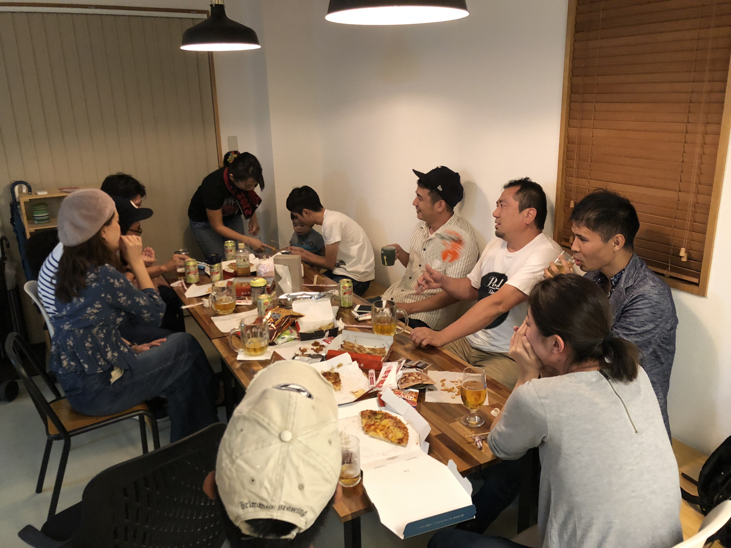 ということで、フラットなフラッグ。沖縄オフィスでは社外の人も参加OK、むしろ社外の人を誘いつつなイベントを開催しています。先日は、朝にコーヒー講座(社外から3名参加)、夜にとれたてビール飲み会(社外から4名参加)というイベントデーもありました。