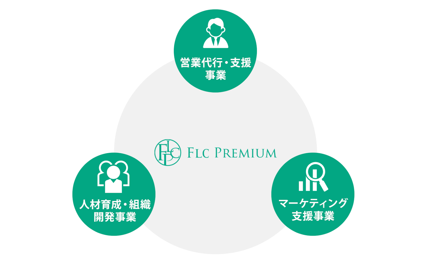 エフエルシープレミアムは、営業・マーケティング支援を中心に事業を展開しています。主に3つの領域で価値を提供しています。