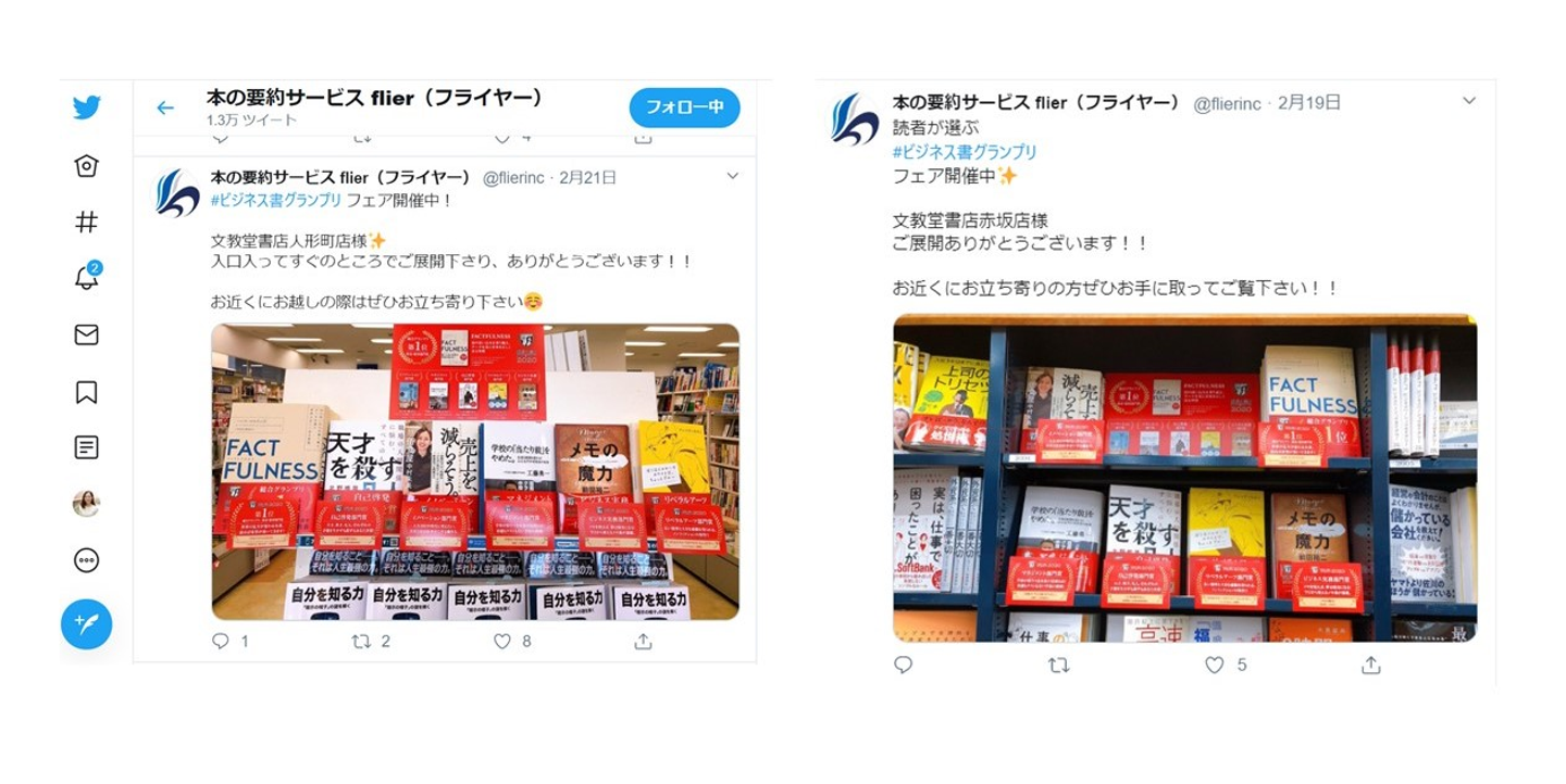 flier公式Twitterにて、書店でのフェアの様子を配信しています。お近くの書店でもチェックしてみてくださいね。