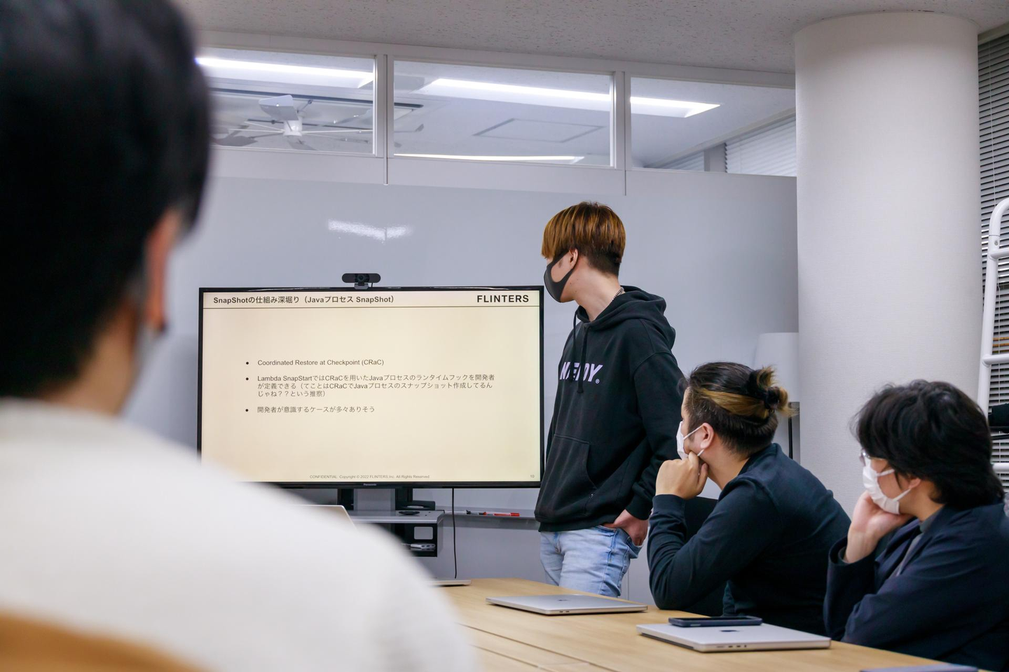 FLINTERSからは17卒から22卒まで5名がそれぞれのプロダクトについての紹介と最近取り入れた、これから取り入れたい技術をたくさん話してもらいました!